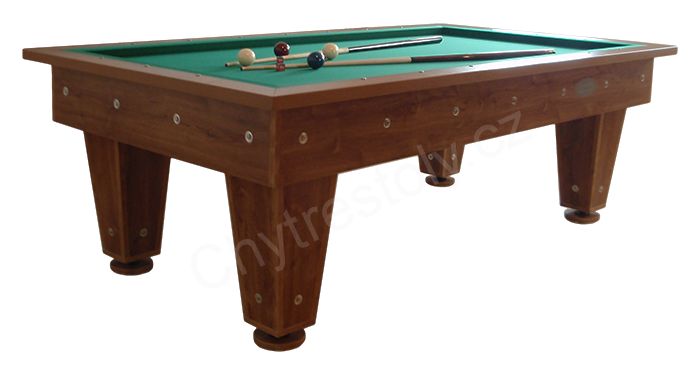 Vrchní rám a korpus: Odolné Lamino (LTD) se zesílenou konstrukcí rámu. Hrací plocha je uzavřená, bez kapes. Korpus je zdoben prémiovými mosaznými plíšky.