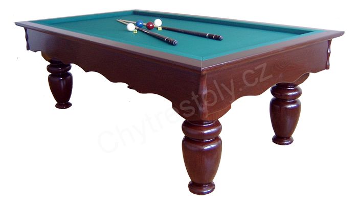 Vrchní rám a korpus: Celomasivní dřevo zpracované s nejvyšší péčí. Korpus se vyznačuje frézováním detailních vlnek po celém svém obvodu. Precizní spoje zaručují dlouhou životnost a tuhost. Hrací plocha je čistě karambolová, bez kapes.